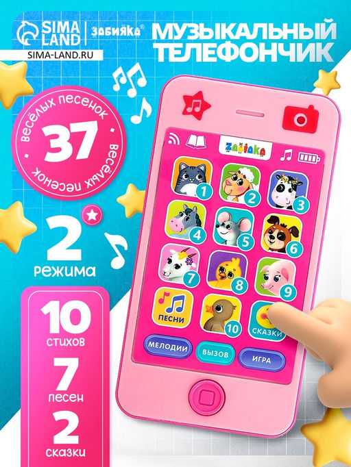Музыкальный плеер — это игрушка с двумя режимами: игровым и обучающим. С помощью этого гаджета ребёнок выучит цифры, названия животных, песни и сказки.Плеер воспроизводит 10 стихов, 7 песенок, 2 сказки, весёлую игру «найди цифру». Тип питания: От батареек. Для кого: Для девочки. Возраст: От 3 лет. Количество батареек: 2. Звук: Да. Свет: Да. Типоразмер батареек: AAA. Бесплатная доставка: Да. Наша разработка: Да. Размеры товара: 6.5/12.2/1.4.