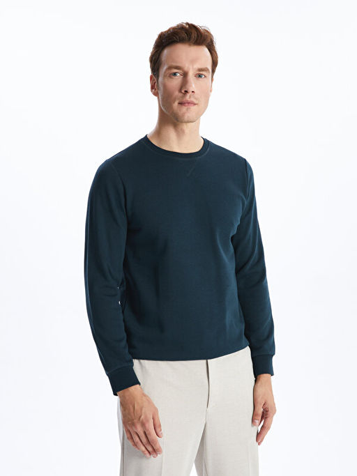 • Bisiklet Yaka Uzun Kollu Erkek Kal?n Sweatshirt