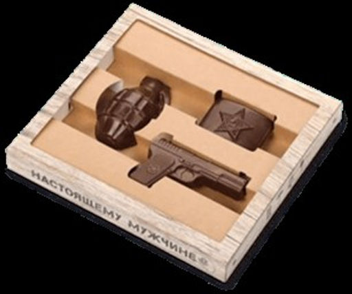 • Любимому защитнику (пистолет, лимонка, бляха) Картон  Темный шоколад, 54% какао
