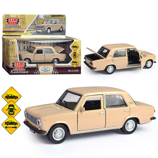 • Машина металл ВАЗ-2101 12 см, (двери, багаж, бежевый) инерц, в коробке