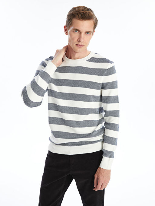 Bisiklet Yaka ?izgili Erkek Triko Kazak