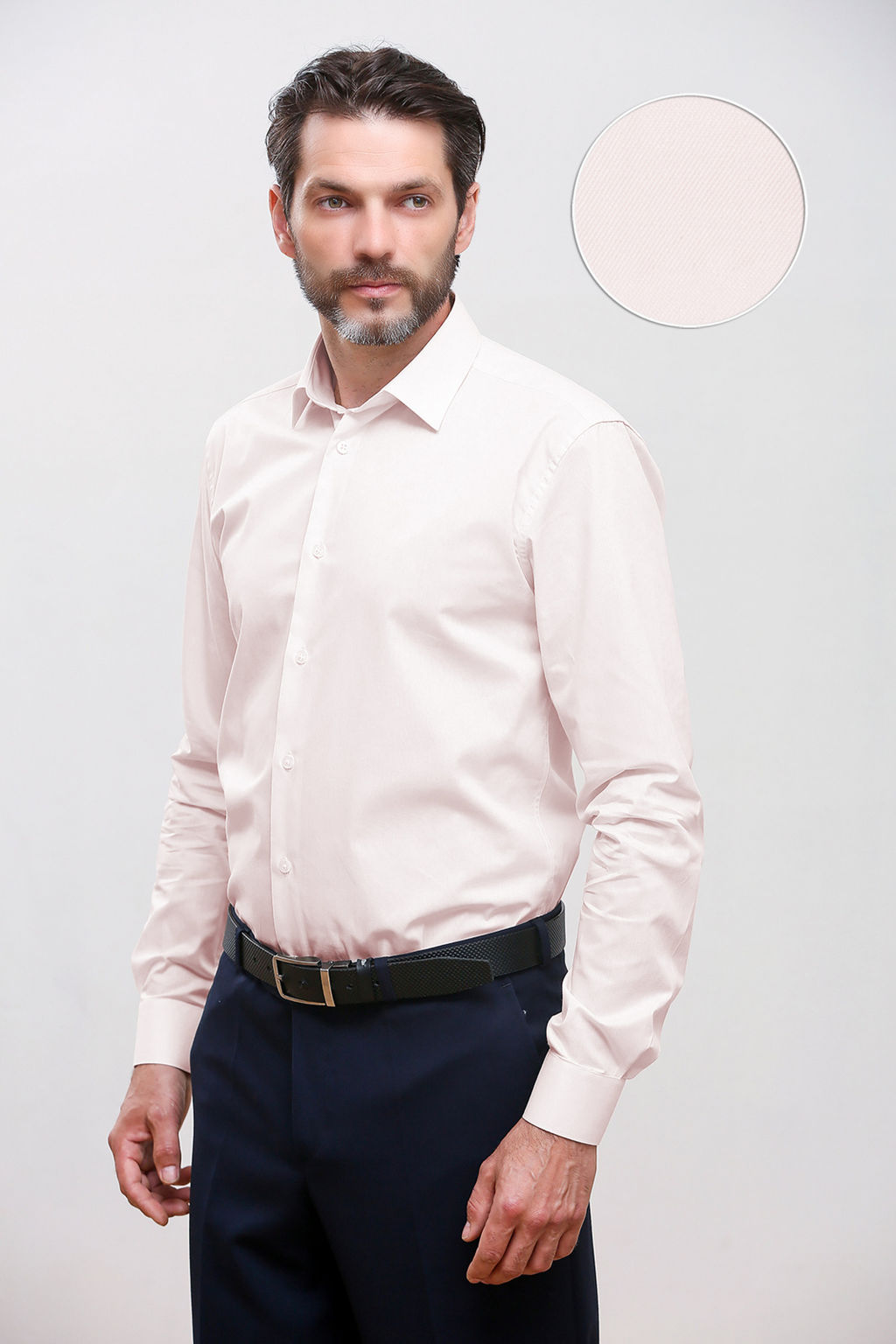 Классическая рубашка бледно розового цвета с длинным рукавом. Ткань специального переплетения - хлопковая пряжа находится с изнаночной стороны, максимально комфортно носить. Универсальный деловой вариант и для торжетства.