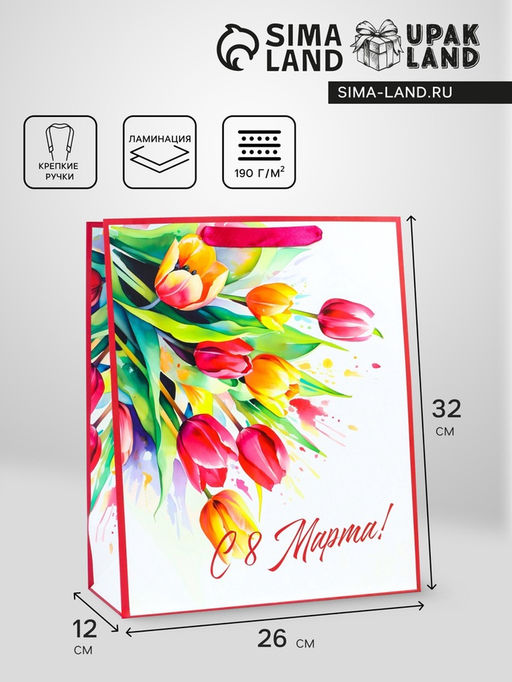 Этот яркий и праздничный подарочный пакет станет идеальным выбором для поздравления девушки на 8 Марта! Вертикальный формат пакета позволяет удобно разместить различные виды подарков, такие как косметика, украшения или книги.Ламинирование поверхности пакета придает ему дополнительную прочность и устойчивость к внешним воздействиям, что особенно важно, если подарок планируется преподнести на улице или в условиях непогоды. Ламинированная поверхность также добавляет блеска и яркости дизайну, делая пакет визуально привлекательным.Яркий и красочный дизайн пакета оживляет настроение и создаёт праздничную атмосферу, что делает его особенно актуальным для Международного женского дня.Такой пакет не только защитит ваш подарок, но и подчеркнет вашу заботу и внимание к деталям. Девушка непременно оценит усилия, вложенные в выбор красивой и качественной упаковки, что сделает момент вручения подарка ещё более приятным и запоминающимся. Форма: Прямоугольная. Плотность, г/м²: 190. Тематика: Цветочно-растительная. Тематика: Надписи, цифры, буквы. Тематика: Женская. Вид упаковки: Пакет подарочный. Рисунок: Да. Тематика праздника: 8 Марта. Отделка пакета: Декор. Отделка пакета: Ламинация. Расширение: Боковая складка. Вид ручки: Ручка-лента. Форма пакета: Вертикальный. Особенности: Креативный. Особенности: С жёстким дном. Особенности: Пакет-открытка. Бесплатная доставка: Да. Наша разработка: Да.