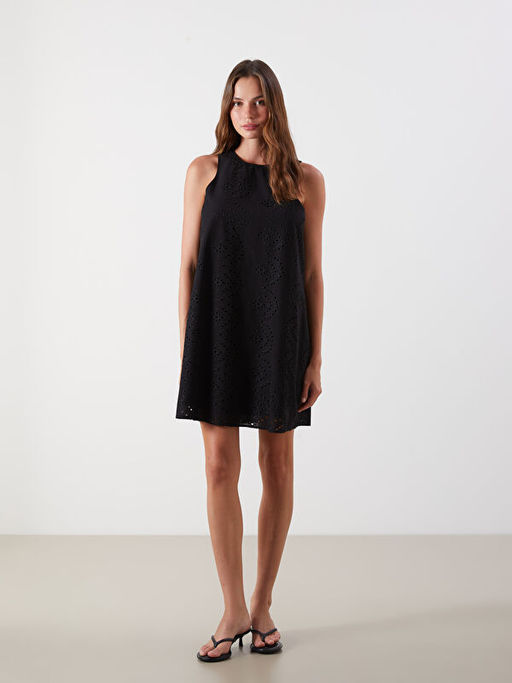 • Bisiklet Yaka Ajurlu Mini Elbise