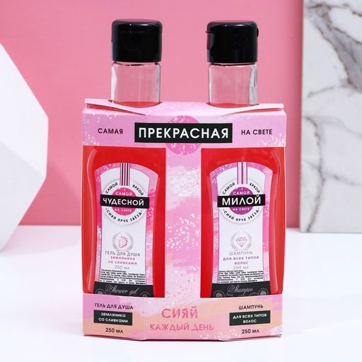 • Подарочный набор косметики «Самая прекрасная», гель для душа и шампунь для волос мартини, 2×250 мл, Чистое счастье