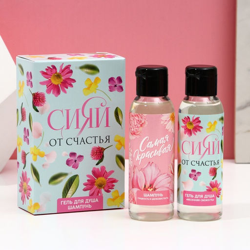 • Подарочный набор «Сияй от счастья», гель для душа и шампунь для волос, 2×100 мл, Чистое счастье