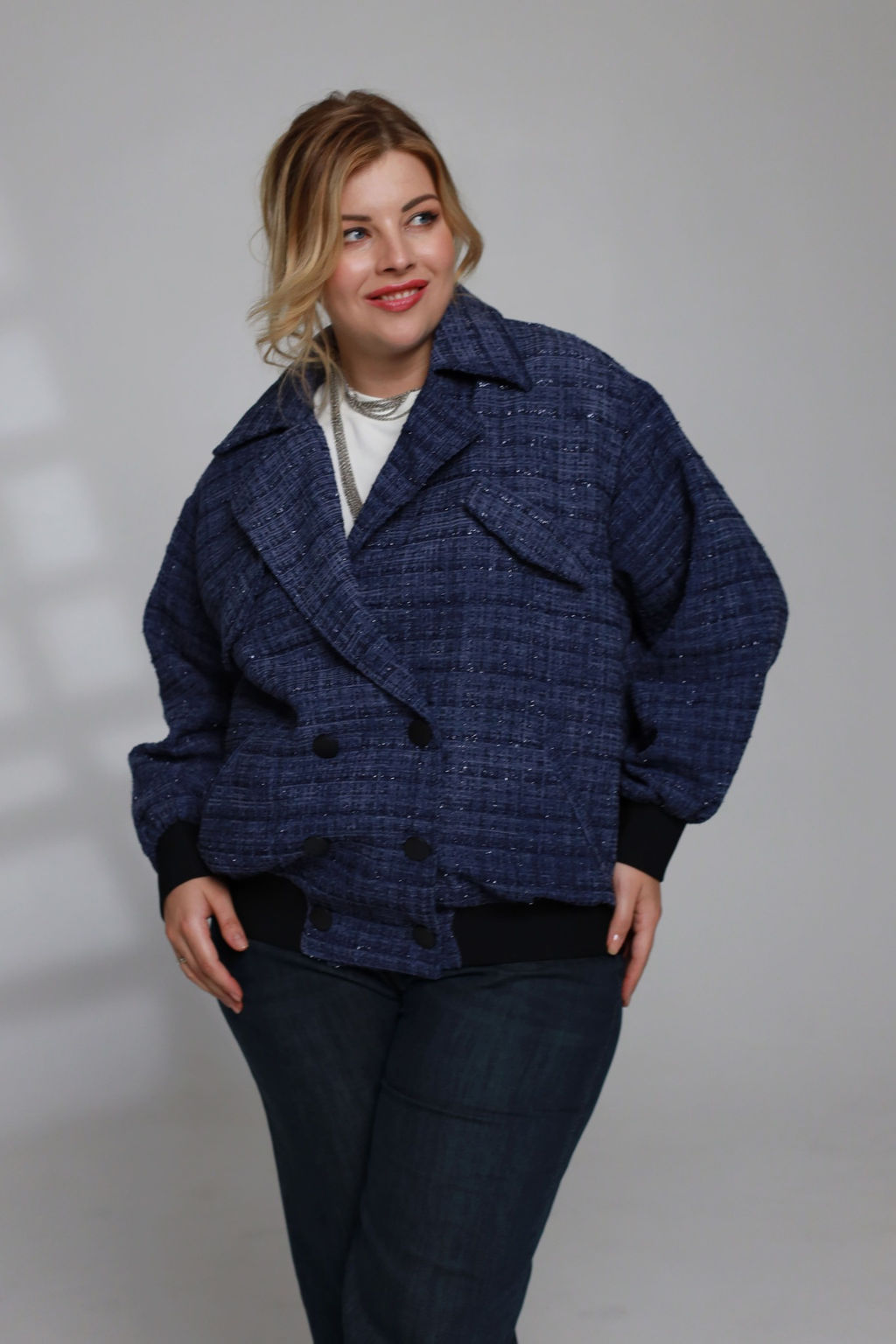 Бомбер двубортный на пуговицах синий