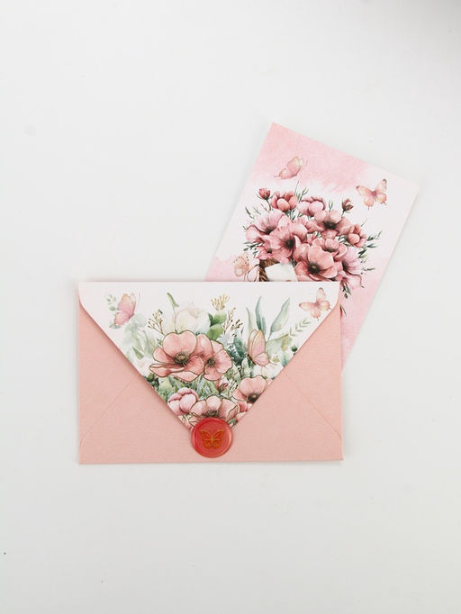 Цена за 5 шт. Конверт для денег с открыткой и наклейкой «Нежные цветы», тиснение, акварельный картон, 16 х 11 см