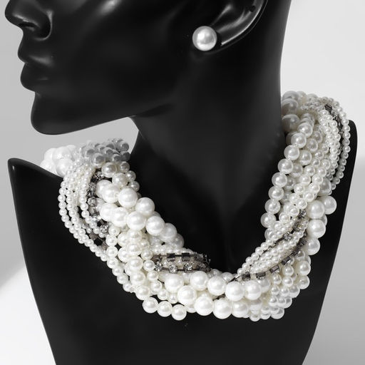 • Набор 2 предмета: серьги, бусы «Жемчужный со стразами», цвет белый, 40см