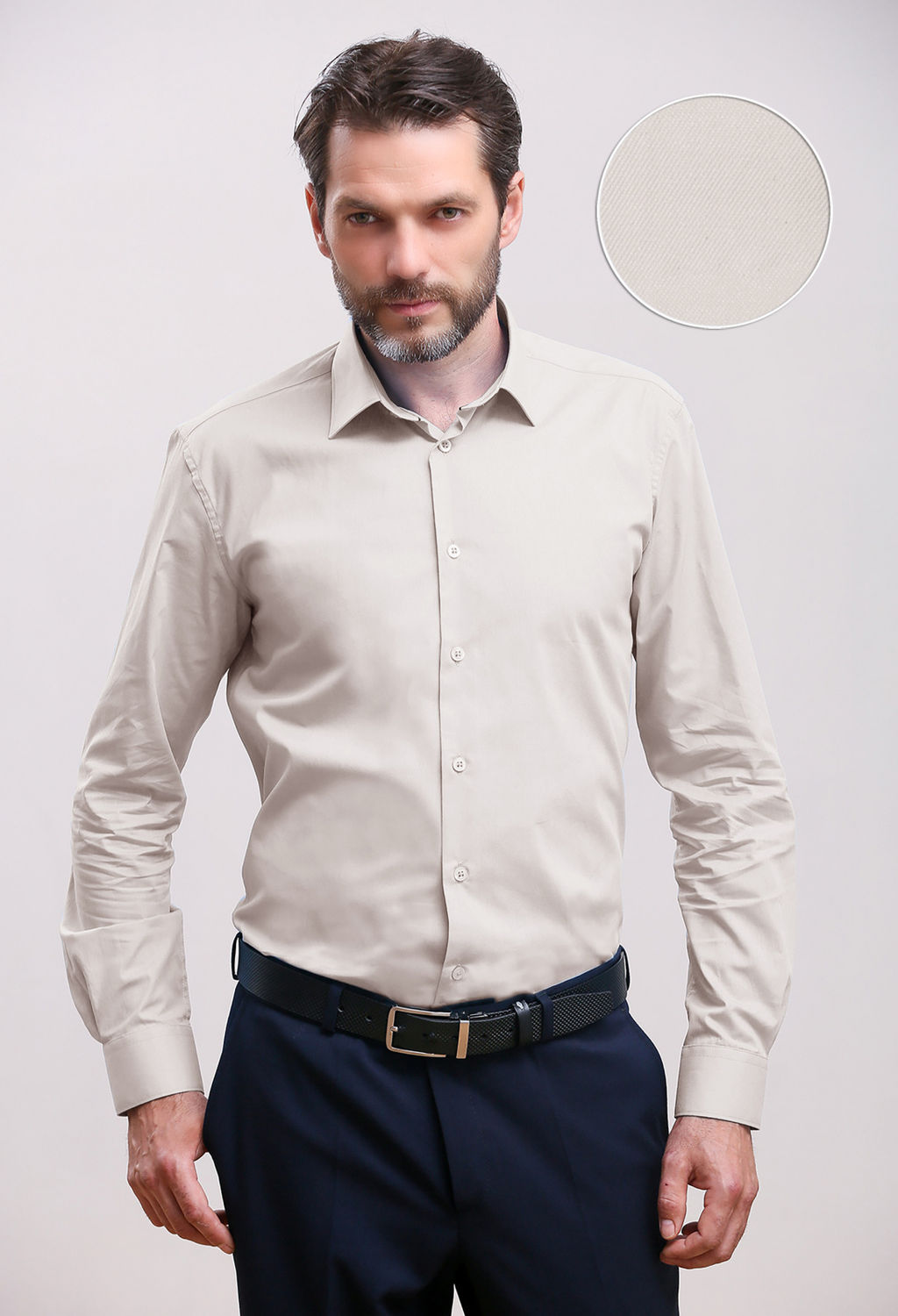 Классическая рубашка благородного серого цвета с длинным рукавом. Ткань специального переплетения - хлопковая пряжа находится с изнаночной стороны, максимально комфортно носить. Универсальный деловой вариант и для торжетства.