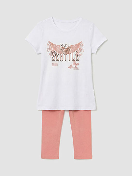 Bisiklet Yaka Bask?l? K?z ?ocuk Ti??rt ve Tayt