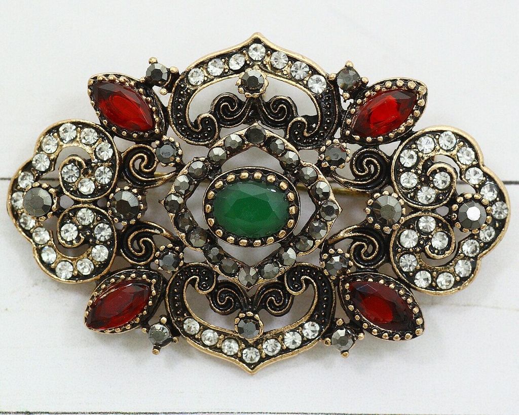 Красивая брошь восточного стиля из специального гипоаллергенного ювелирного сплава,который покрыт золотом или устойчивым родиевым покрытием, предотвращающим раздражение кожных покровов.