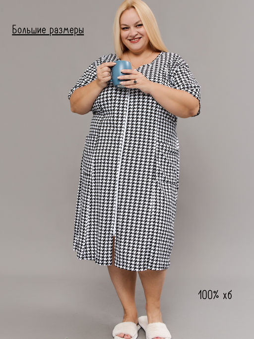 • Халат домашний на молнии больших размеров Х-01 гусиная лапка