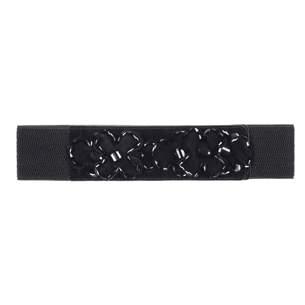 Женский ремень с крупным декоративным элементом черного цвета поможет создать интересный образ в стиле "городской шик".
