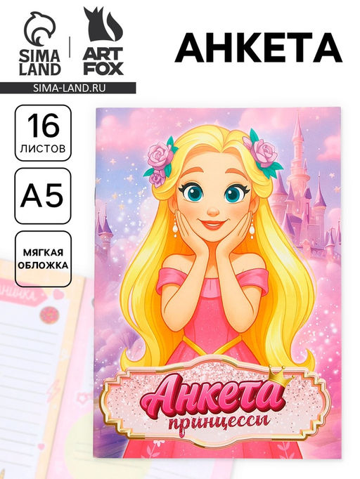 • Цена за 3 шт. Анкета для девочек А5, 16 листов Анкета принцессы