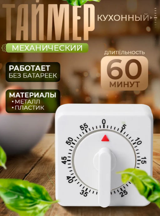 Каждый повар со стажем знает, что кулинария — наука точная! Подчас считанные минуты отделяют шедевр от безнадёжно подгоревшего блюда. Именно поэтому механический таймер — устройство, которое всегда следует иметь под рукой.Чем он хорош?Работает без батареек.Компактен.Точен.Диапазон работы: 1 час. Выберите нужное время и заводите таймер. Когда время закончится, прибор издаст громкий звук. Тип таймера: Механический. Бесплатная доставка: Да. Наша разработка: Да. Размеры товара: 7/5/7.