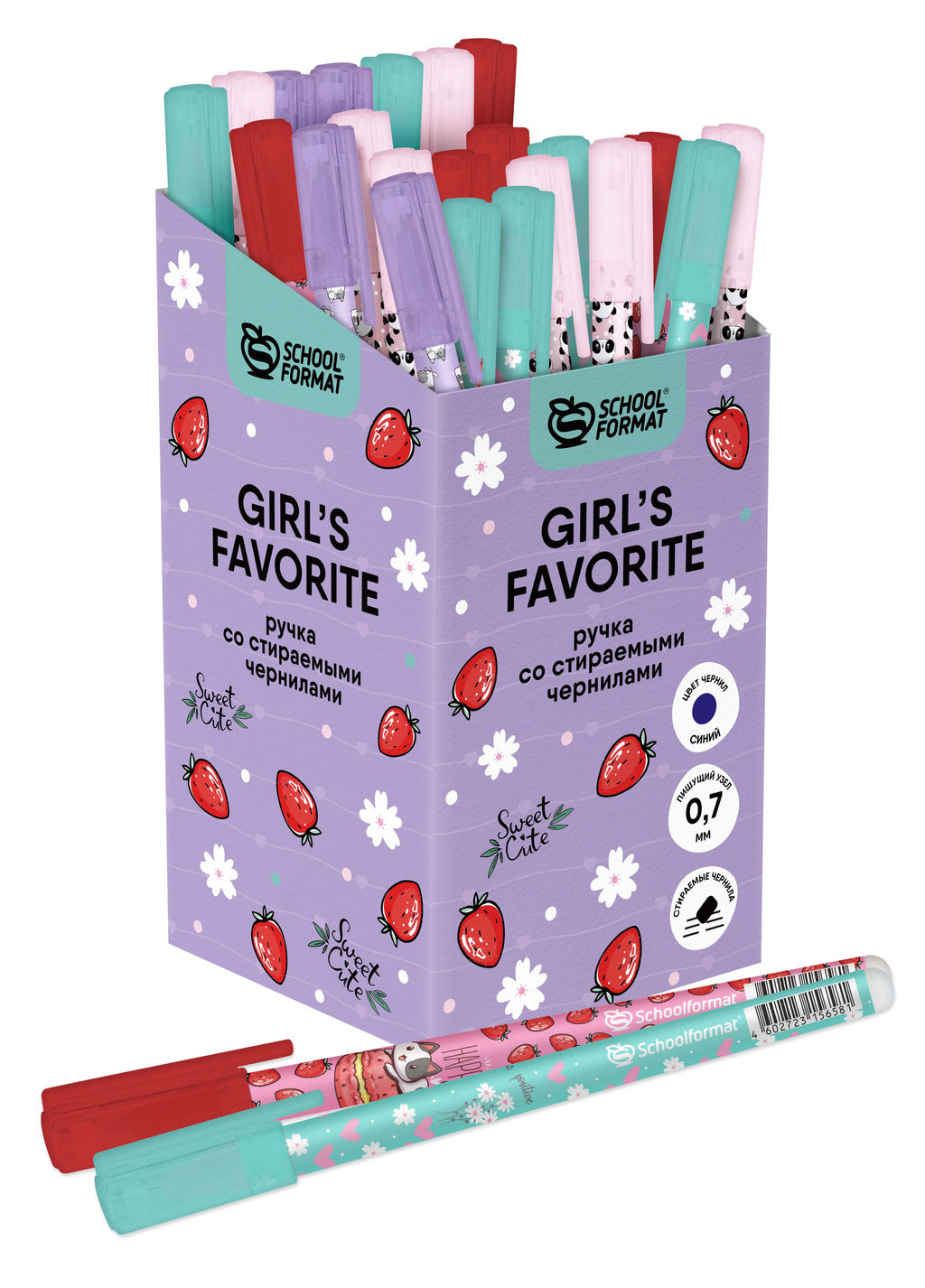 • Цена за 2 шт. Ручка гелевая стираемая Schoolformat GIRLS FAVORITE 0,5 мм синяя