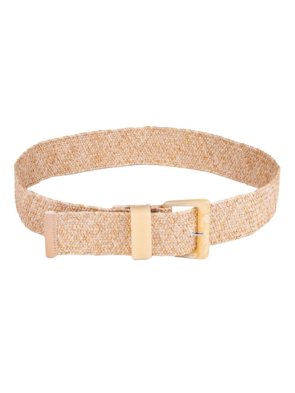 Стильный бежевый ремень-резинка из текстиля с пряжкой, имтирующей слоновую кость. Плетеная структура ремня позволяет застегнуть его в любом удобном месте, что в значительной степени увеличивает его практичность при ношении и позволяет отрегулировать для себя комфортный размер. Модель отлично сочетается с нейтральными рубашками, пиджаками, джинсами и брюками, разнообразит любой образ, не перегружая его.