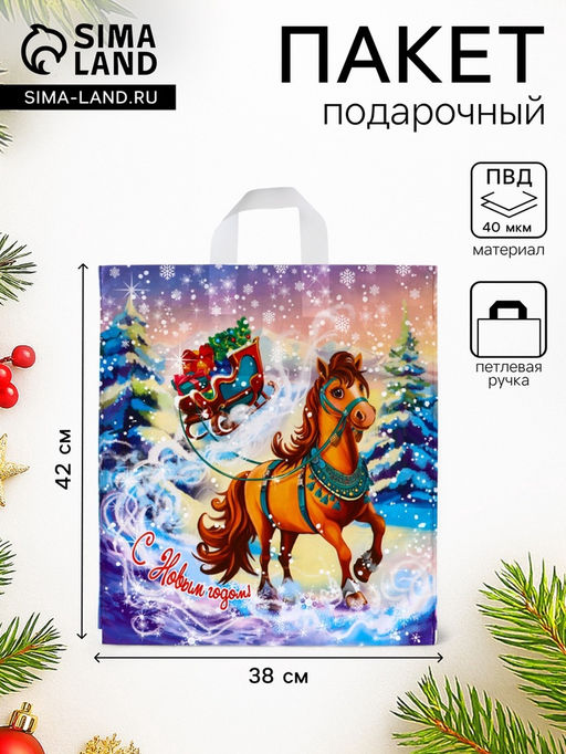• Цена за 25 шт. Пакет подарочный новогодний «Савраска», полиэтиленовый с петлевой ручкой, 42×38 см, 40 мкм