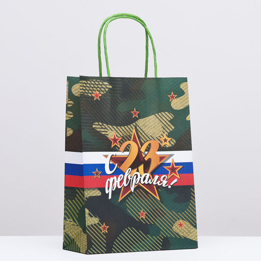 • Цена за 3 шт. Пакет подарочный крафт С 23 Февраля! 18?8?25 см