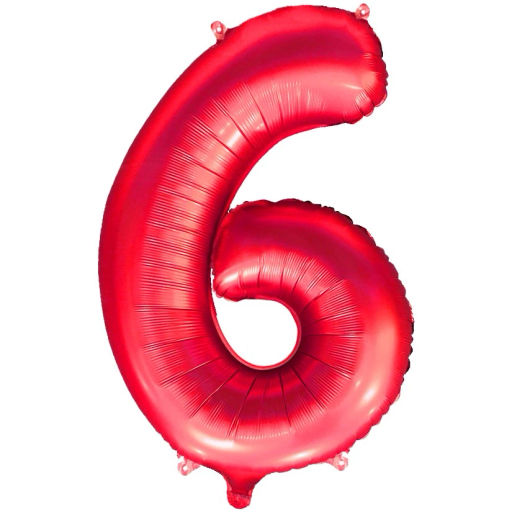 Цена за 4 шт. Шар фольгированный 32/81см "Цифра 6" (красный)