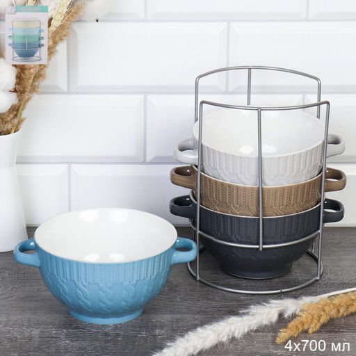 • Набор супниц 4 шт на подставке с ручками арт. 20057 (730027)