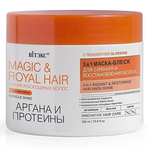 Magic&Royal Hair Аргана и Протеины 3в1 Маска-блеск для сияния и восстановления волос, 300 мл