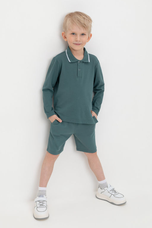 Трикотажные шорты для мальчика из петельчатого футера. Эластичный пояс на резинке регулируется по ширине с помощью шнурка, по бокам два удобных кармана.­