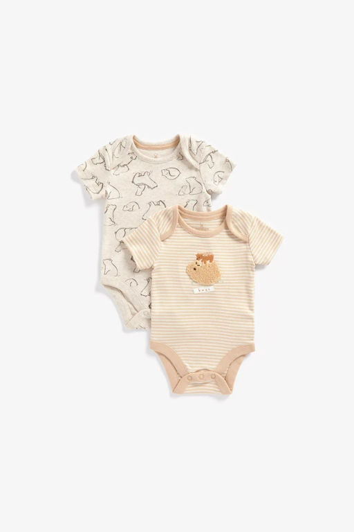 Распродажный ассортимент - это остатки коллекций, выставочные образцы с витрины, товары без упаковки, восстановленные или пользующиеся низким спросом изделия, а также продукция с незначительными дефектами внешнего вида (царапины, потертости и другие особенности). Обращаем ваше внимание, что продукция данной категории возврату и обмену не подлежит. Приобретая товары из распродажного ассортимента вы соглашаетесь на наличие дефектов во внешнем виде или упаковке. - 100% хлопок - Комплект для малыша, состоящий из 2-х боди с коротким рукавом. Боди выполненные в бежевых цветах и украшены узорами и аппликацией "Объятия мишутки". В размерах 50-56 см предусмотрены швы наружу.­