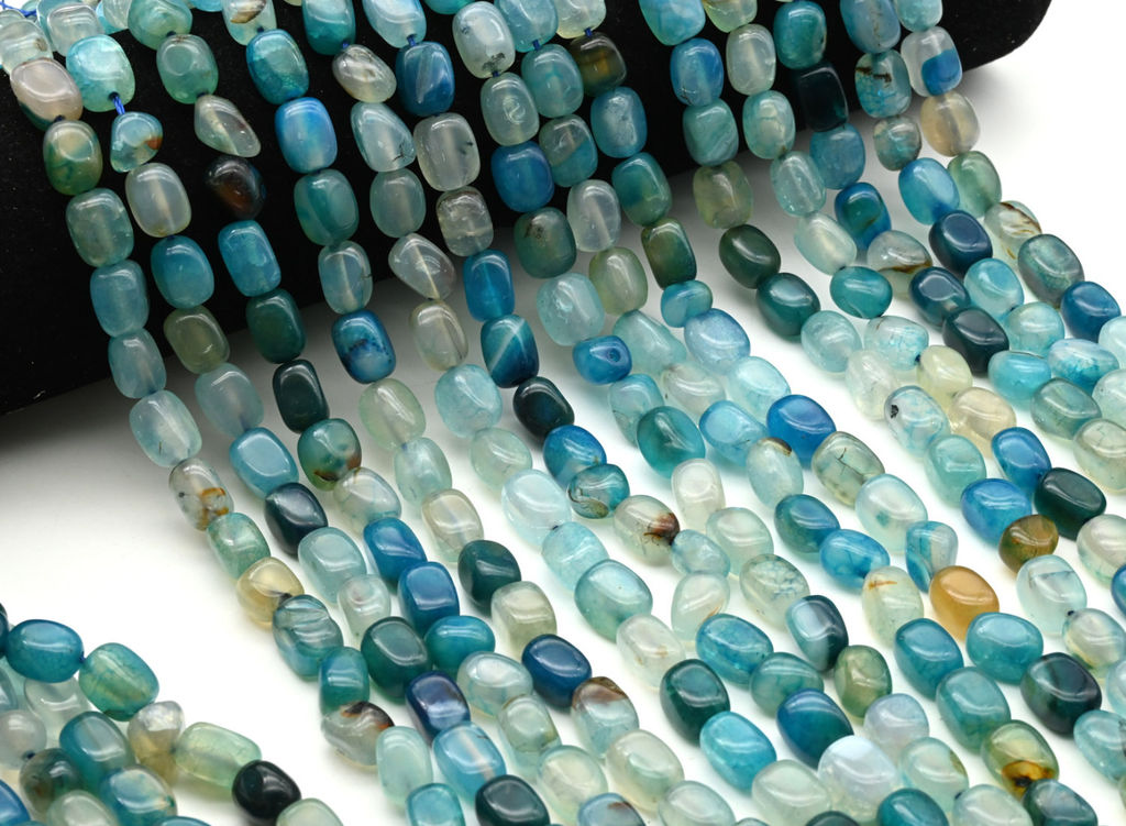 • Бусины из агата тонированного прямоугольник 8*11мм цв.голубой, 37см, 33 бусины Радуга камня