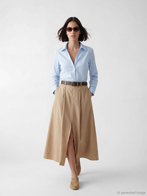• Beli Kemerli A Kesim Pileli Etek