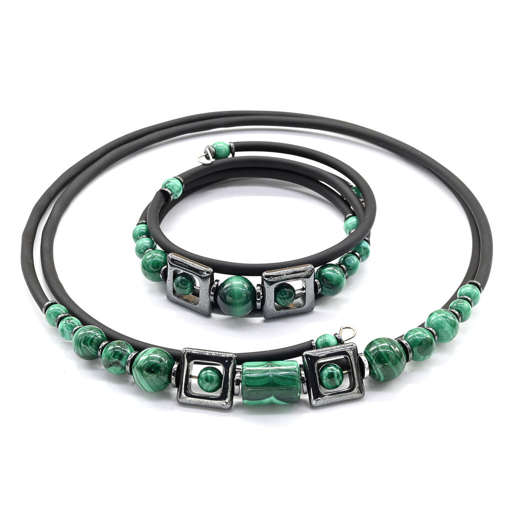 • Набор чокер и браслет с малахитом шарики 8-10мм, 43см, 17см Радуга камня