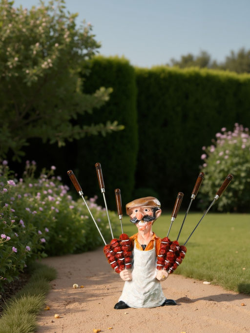 • Садовая фигура - подставка для шампуров из полистоуна «Шашлычник», 44×30×55 см