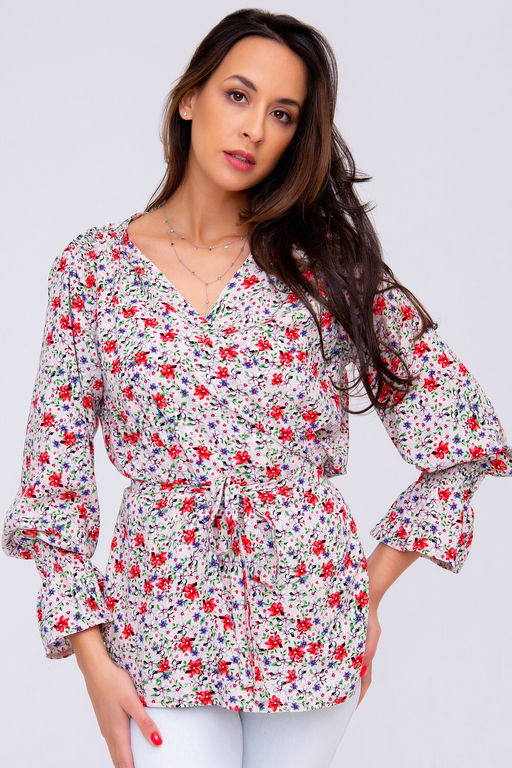 Пояс цветочной блузки регулируется завязкой, которая позволяет подчеркнуть талию и создать акцент на своих преимуществах. Этот элемент декора придаст изюминку вашему образу и сделает его незабываемым.