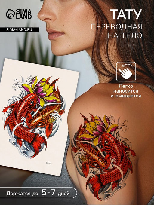 • Цена за 2 шт. Переводная тату на тело цветная Красные карпы, 26.1?14.6 см