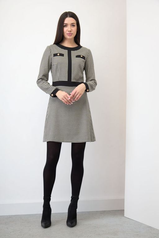 Состав: Вискоза-62%; ПЭ-20%; ПА-18%; Изящное маленькое платье во французском стиле. Платье полуприлегающего силуэта в верхней части, нижняя часть по крою напоминает А-силуэт. Полуприлегание лифа платья происходит за счёт нагрудных и талиевых вытачек. Горловина платья округлая. Оформлена отделочной деталью, повторяющий вырез по полочке и спинке. По центру от горловины до талии планка, также перед платья имеет нагрудно-декоративные нефункциональные карманы-листочки, на которых расположены пуговицы. В среднем шве спинки располагается застежка-молния. Верхнюю часть лифа и нижнюю часть платья разделяет втачной пояс. Длина изделия платья по среднему шву спинки 86 см. Рукав платья одношовный с локтевой вытачкой (длина рукава 60 см). Низ рукава оформлен функциональными манжетами на петле-пуговице. Длина юбки от нижнего края пояса до низа по боковом шву 47,5 см. Фурнитура может отличаться от представленной на фото. Особые рекомендации: рекомендуется холодная деликатная ручная стирка, без использования отбеливающих СМС, без интенсивного трения. Сушка в вертикальном положении. ВТО с минимальным паром. -- Характеристики -- Состав: Вискоза-62%; ПЭ-20%; ПА-18%; Сезон: Весна Рост: 164 Страна бренда: Беларусь