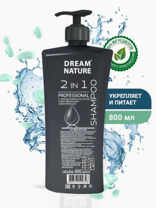 • Dream Nature Шампунь (дозатор-800мл) 2в1 с Гиалурон.кислотой и Витамин.комплекс. 12