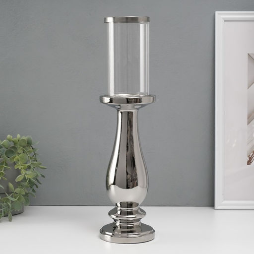 Подсвечник на 1 свечу «Аванти», керамика, стекло, d=8 см, серебро, 10×10×40.5 см