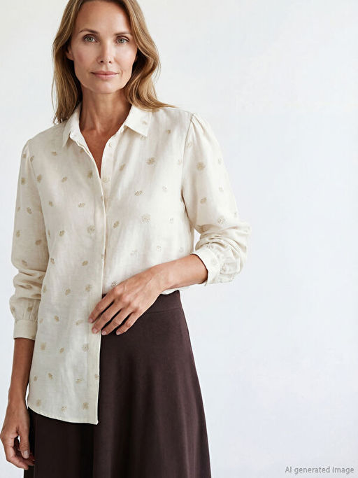 • Desenli Keten Kar???ml? Kad?n G?mlek