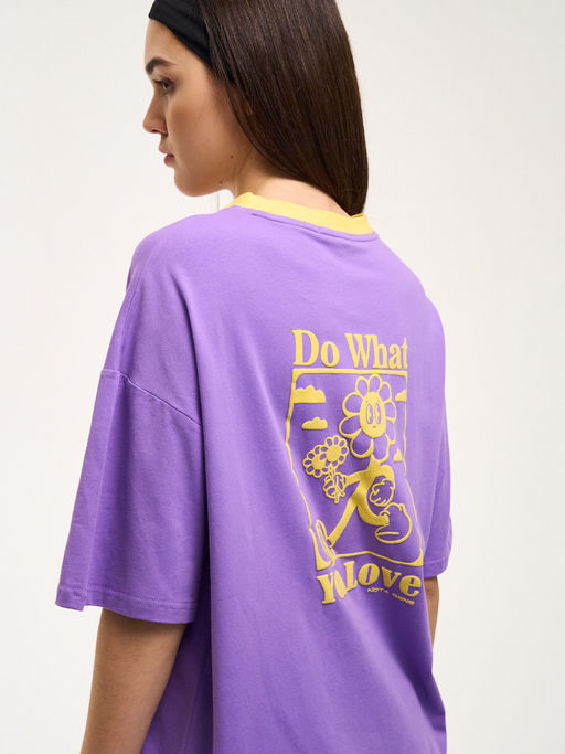 Футболка из трикотажа средней плотности. Принт на спинке. Контрастная горловина. Состав:95% хлопок, 5% эластан