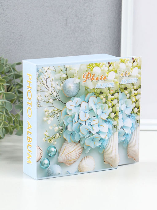 • Фотоальбом на 40 фото 10х15 см "Голубая гортензия и ракушки" в коробке 4,5х14х17 см