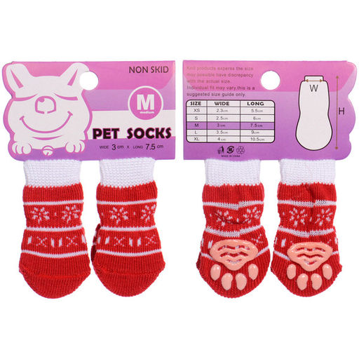 Цена за 5 шт. Носочки для животных "LAPUSIK", принт олененок, цвет красный, размер m, 3см