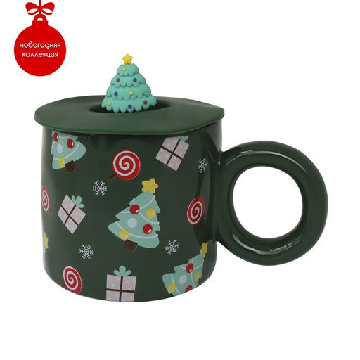 Кружка керамическая с силиконовой крышкой «Ёлочка», 350 мл, цвет зелёный