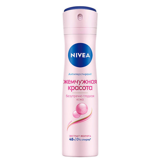 Дезодорант-антиперспирант спрей для женщин NIVEA Жемчужная красота, благодаря своей формуле, обеспечивает надёжную защиту от потоотделения и неприятного запаха и гладкую кожу подмышек. Слишком красивых, чтобы их прятать! Формула продукта с экстрактом натурального жемчуга не оставляет видимых следов на коже и белых пятен на одежде, делая кожу удивительно мягкой и ухоженной. Антиперспирант быстро высыхает и защищает от неприятного запаха на 48 часов. Без ощущения липкости на коже. Уже более 100 лет Nivea создает особенно бережные для кожи формулы. Попробуй нежный уход за кожей от антиперспиранта Nivea без этилового спирта!