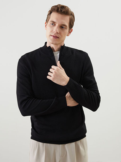 • Dik Yaka Uzun Kollu Erkek Triko Kazak