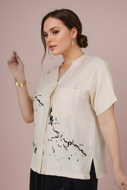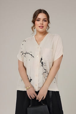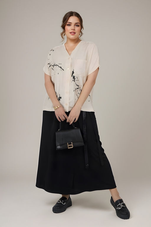 Костюм с юбкой с разводами на рубашке бежевый с черным