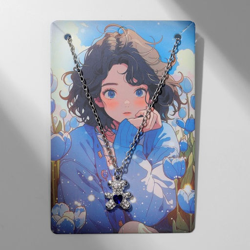• Кулон «Мишка», с сердечком, бело-синий в серебре, 40 см