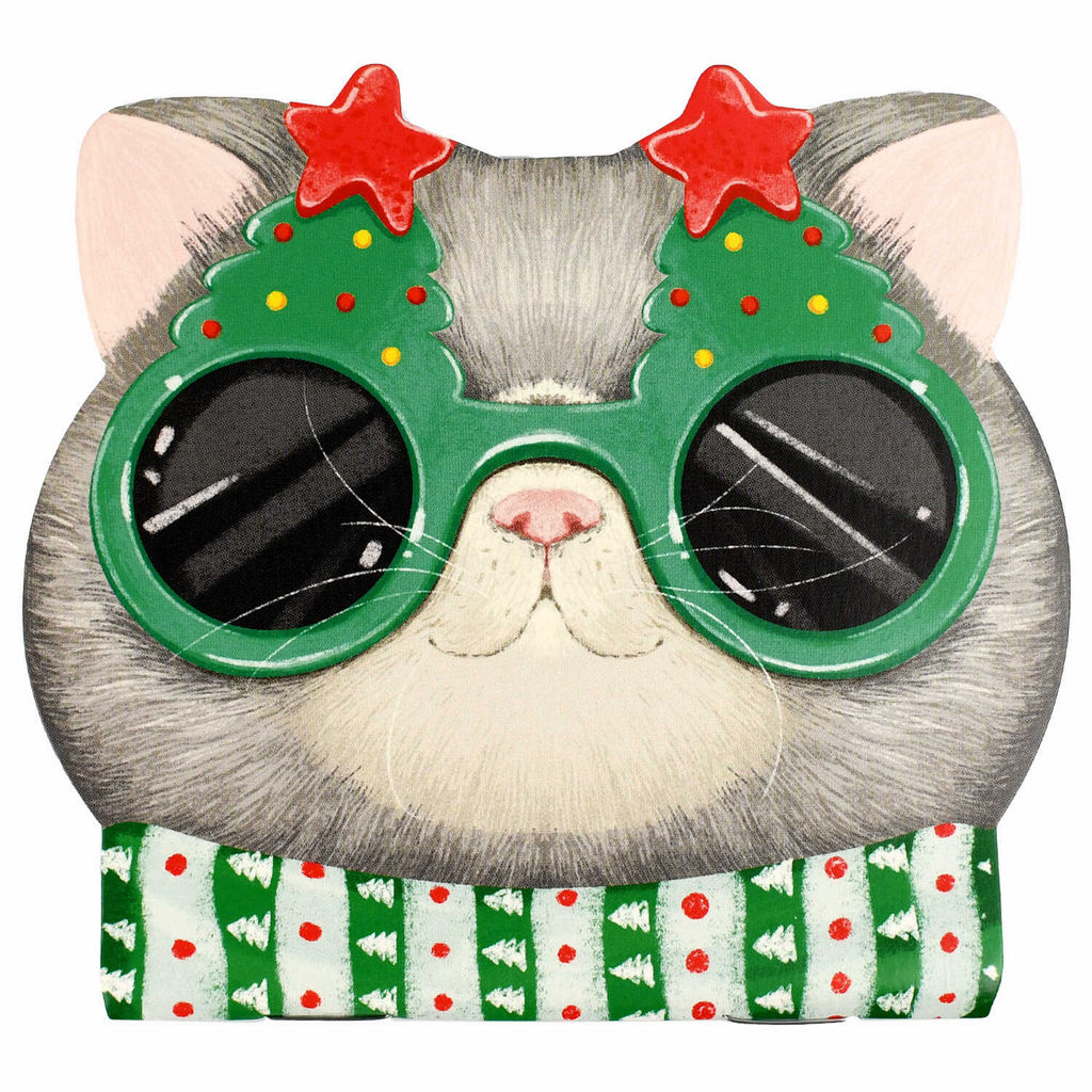 Блокнот 30л арт. 69608/ 10 НОВОГОДНИЙ СЕРЫЙ КОТ /120х117 мм, фигурная вырубка, мягкий переплёт (1 скоба). вн.блок - белый офсет, без печати. Обложка - мелованный картон 190 г/м?,