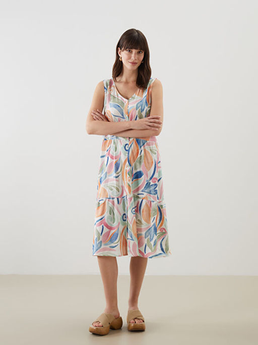 V Yaka Desenli A Kesim Kad?n Elbise