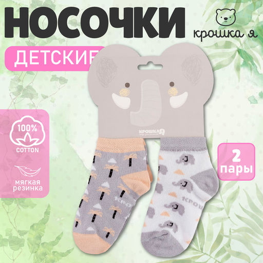 Носки детские Крошка Я «Слон», набор 2 пары, 10-12 см